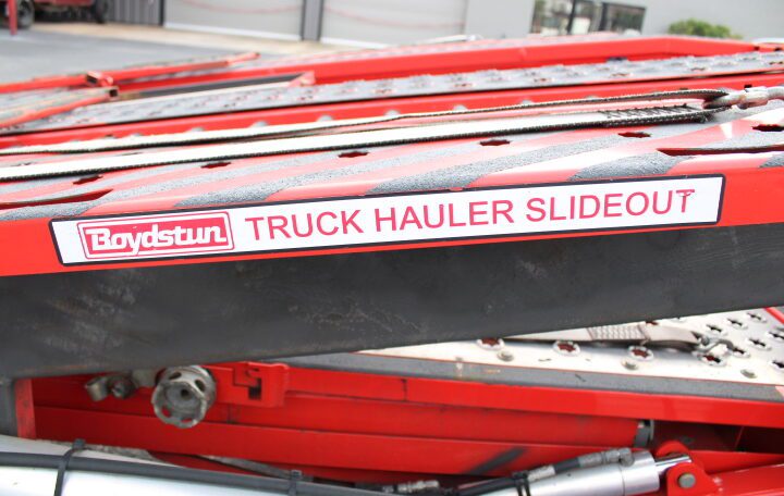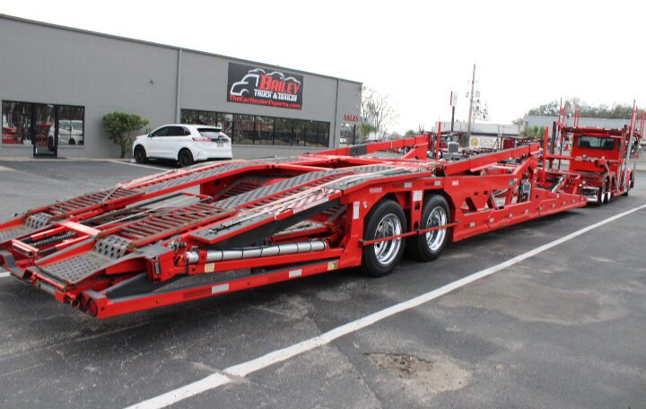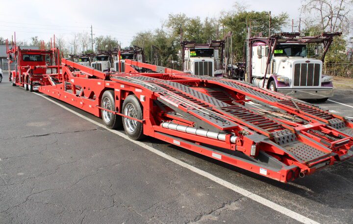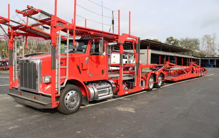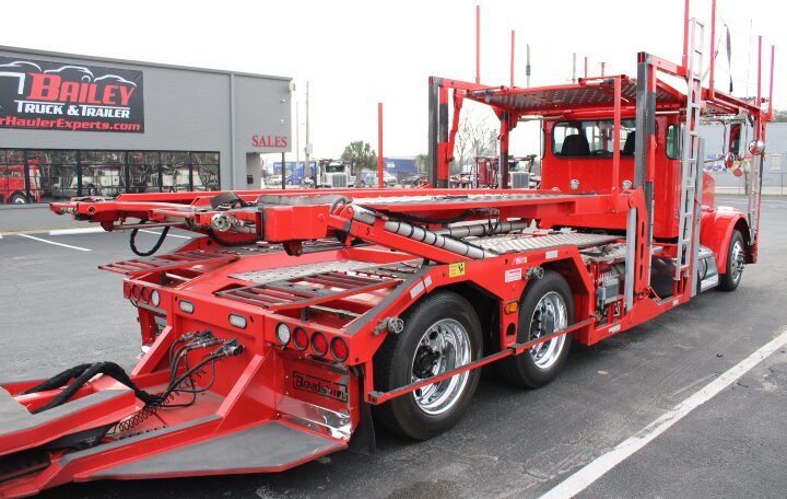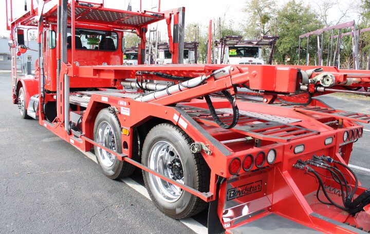Plus Tax & Licenses2022 Peterbilt Day Cab with an Amazing Boydstun Set Up. this Unit is 80 feet long Equipped with Truck Package Slide Outs and Rapid Ratchet tie down system. This Set up is ready to haul 9 MONSTER Vehicles. Drop pockets and the day cab with a 3 1/2 car head rack Make this a Car haulers dream set up. Did I forget to mention the incredibly low miles on this AUTOMATIC truck.
